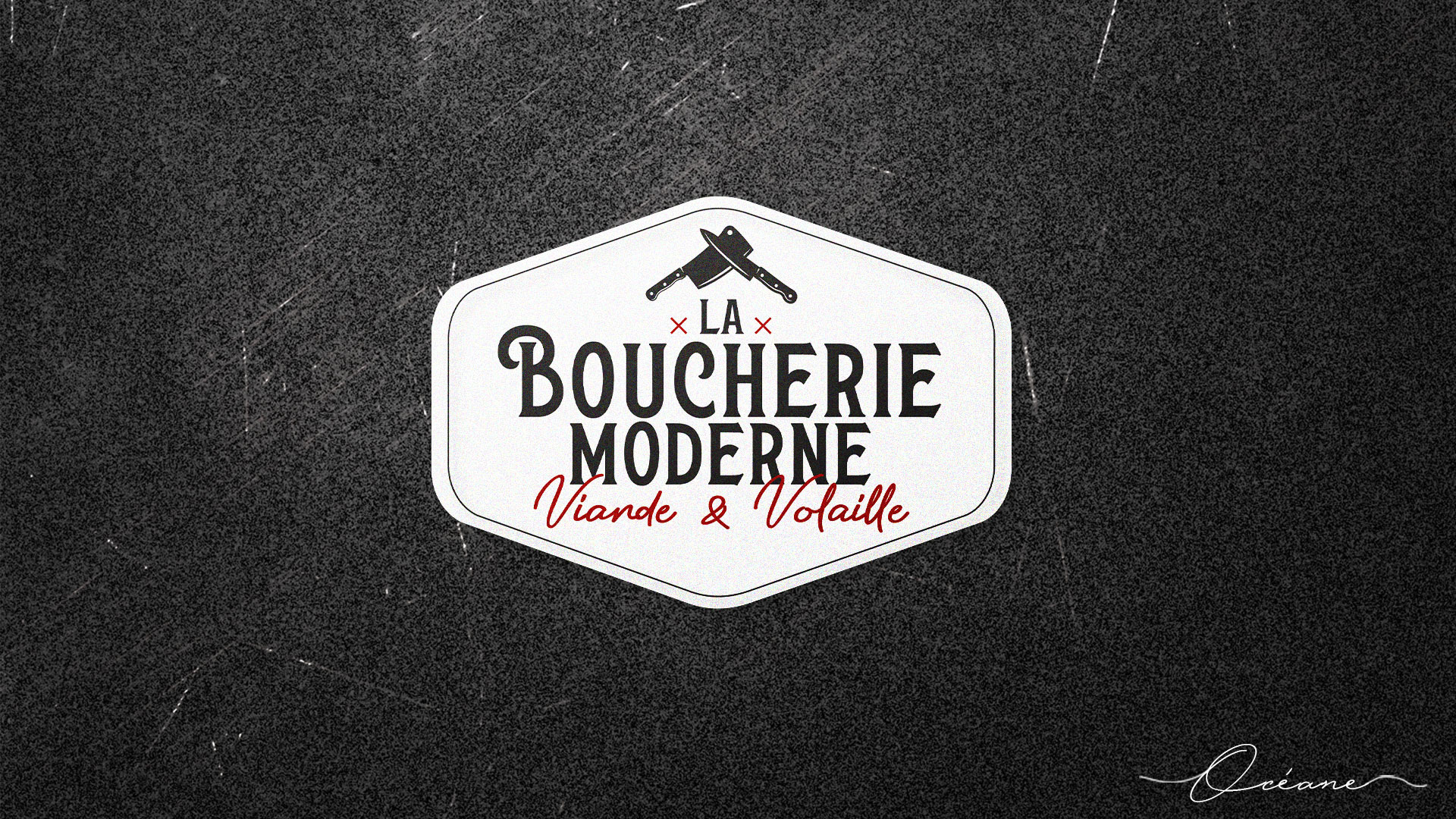 Client : La boucherie moderne (10) Description du projet : Refonte de l’identité visuelle de la marque avec la création du tout nouveau logo de la Boucherie moderne, situé aux Halles de l’hôtel de ville à Troyes. Création des cartes de visite et du flyers annonçant l’ouverture de stand volaille. Refonte des enseignes pour le stand Volaille et stickers intérieur pour la Boucherie.